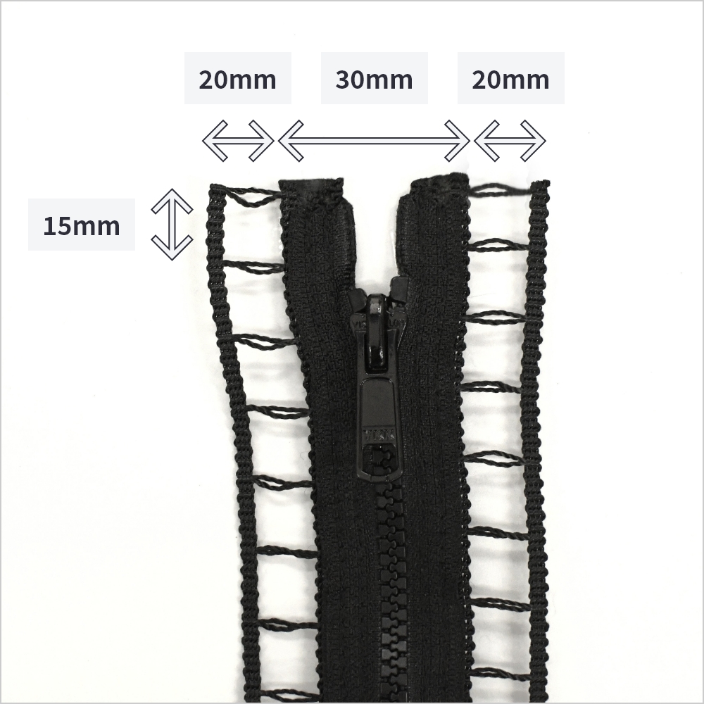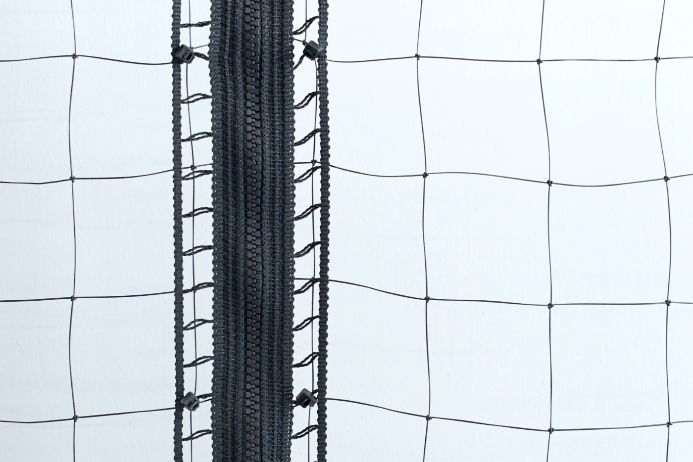 ピーコンネットの開閉に便利なネット用ファスナーです。体育館、イベント会場、非常階段、物流倉庫、工場の軒下や出入り口など、様々な場所での使用していただけます。1m用と2m用の2種類がラインナップ。