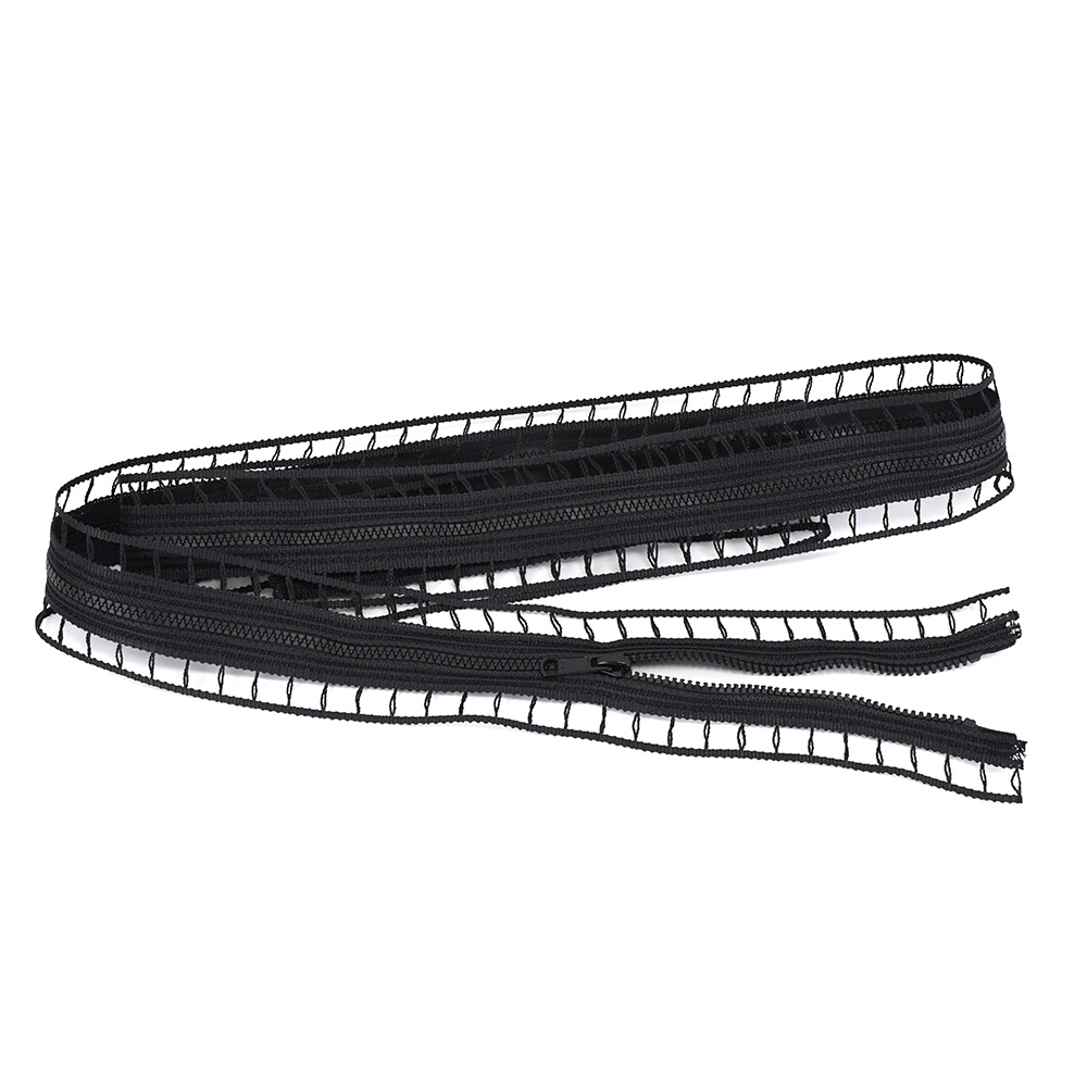 ※ファスナーの仮止めとして結束バンドを端につけると縫いやすくなります。
